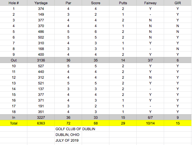 This past summer at the Golf Club of Dublin in Dublin, Ohio, I was fortunate enough to shoot a 68. I learned a great deal from this round and share my story and my tips – what I learned from this round of golf and how I think it can help me moving forward and more importantly help your game as well!