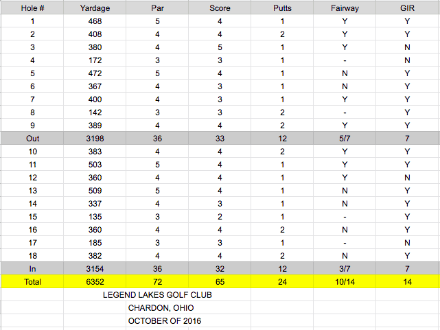 My career best round of all time took place in 2016, when I somehow shot a 65 on a 6300 yard course called Legend Lakes Golf Club in Chardon, Ohio. I reflect on this round as well and share some insights that can help your game.