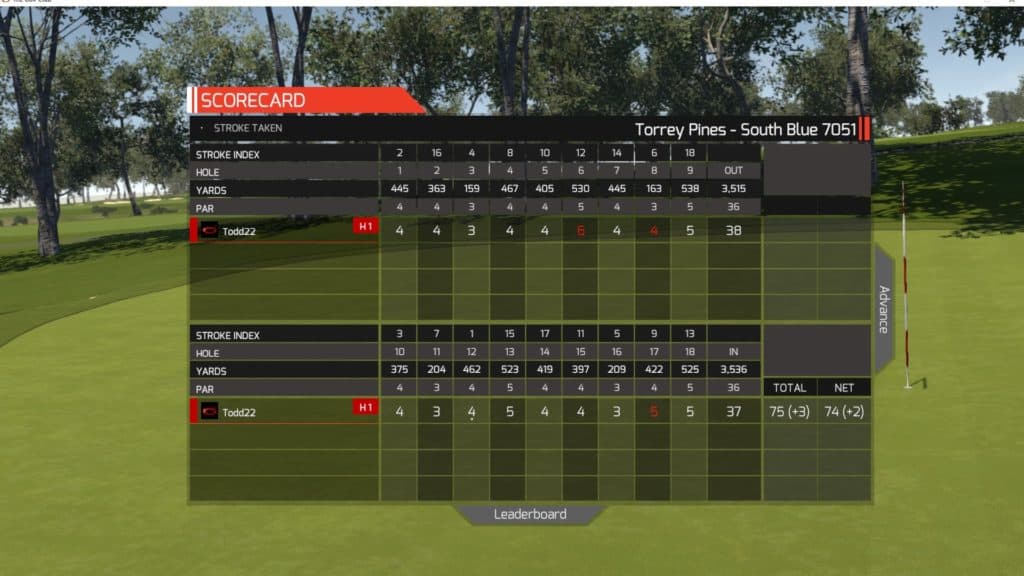 Torrey Pines – 7051 – Par 72 – Score 75 (+3)