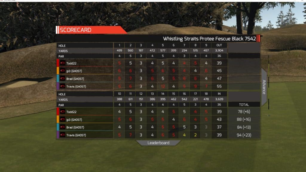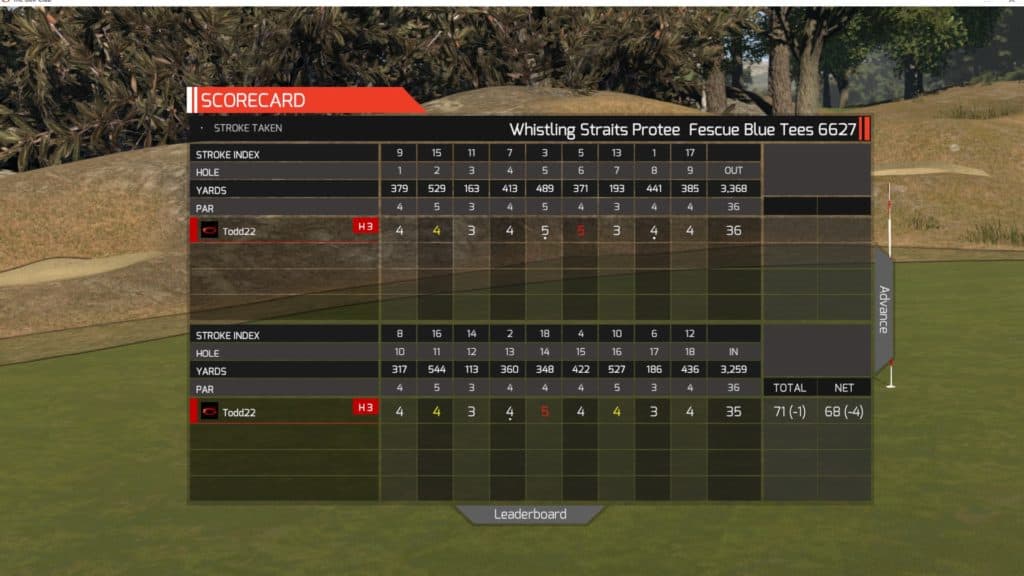 Summary – I decided to challenge myself with a longer course. I had been watching the PGA Tour and following Tiger Woods and decided to challenge myself on a long, difficult course. I must have hit my 4 iron around 5 times on either a par 3 or an approach shot on a par 4. I need to improve in this area. I ended up hitting the 4 iron really solid and having a great scoring round considering the course I was playing. In real golf, I don’t end up playing over 7,000 very often if at all.
