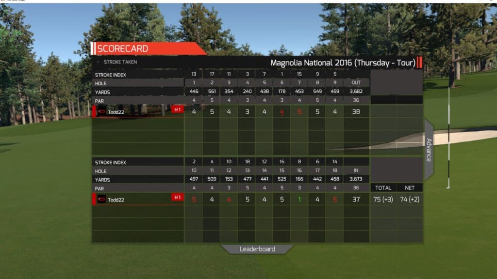 Magnolia National – 7355 yards – Par 72 – Score 75 (+3)
