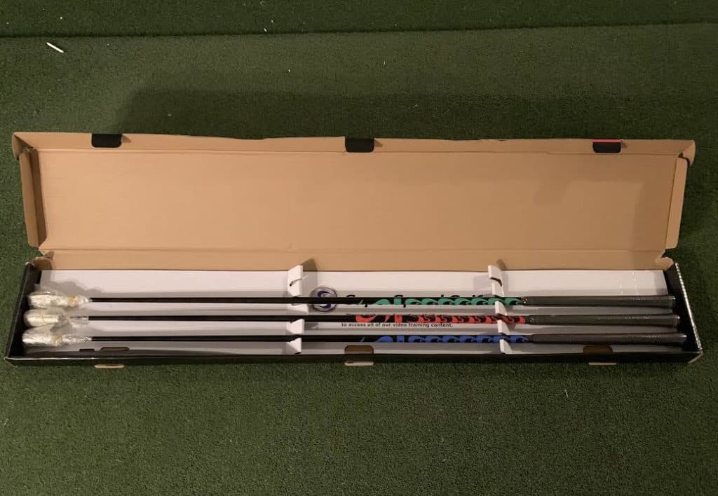 The SuperSpeed Training System is based on three different swing speed sticks all weighing at different weights. There is a green club that is 10% lighter than the average driver, the blue club which is 5% lighter and the red club which is actually 5% heavier!