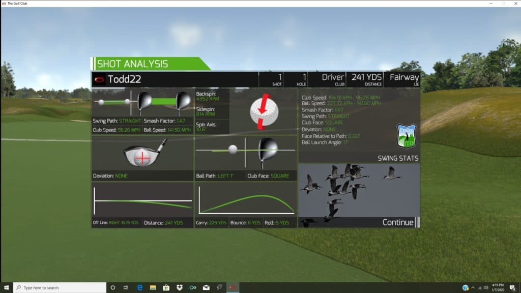 You can also see that my ball path is one degree to the right. The shot had a slight right to left draw patter on it and I hit the back left side of the green. I typically aim just right of where I want the ball to end up.